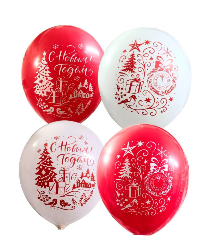 12" С НОВЫМ ГОДОМ (8 ШТ) БЕЛЫЙ , КРАСНЫЙ 2/1/9